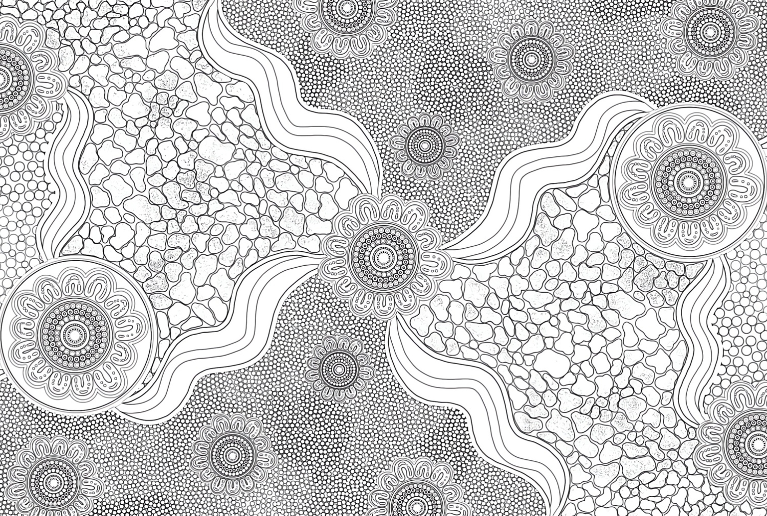 Bring Aboriginal art into your home, classroom or creative space with these downloadable colouring-in pages, created from my original artwork. Each design is inspired by Country, connection & storytelling and is intended to be enjoyed at your own pace by all ages.