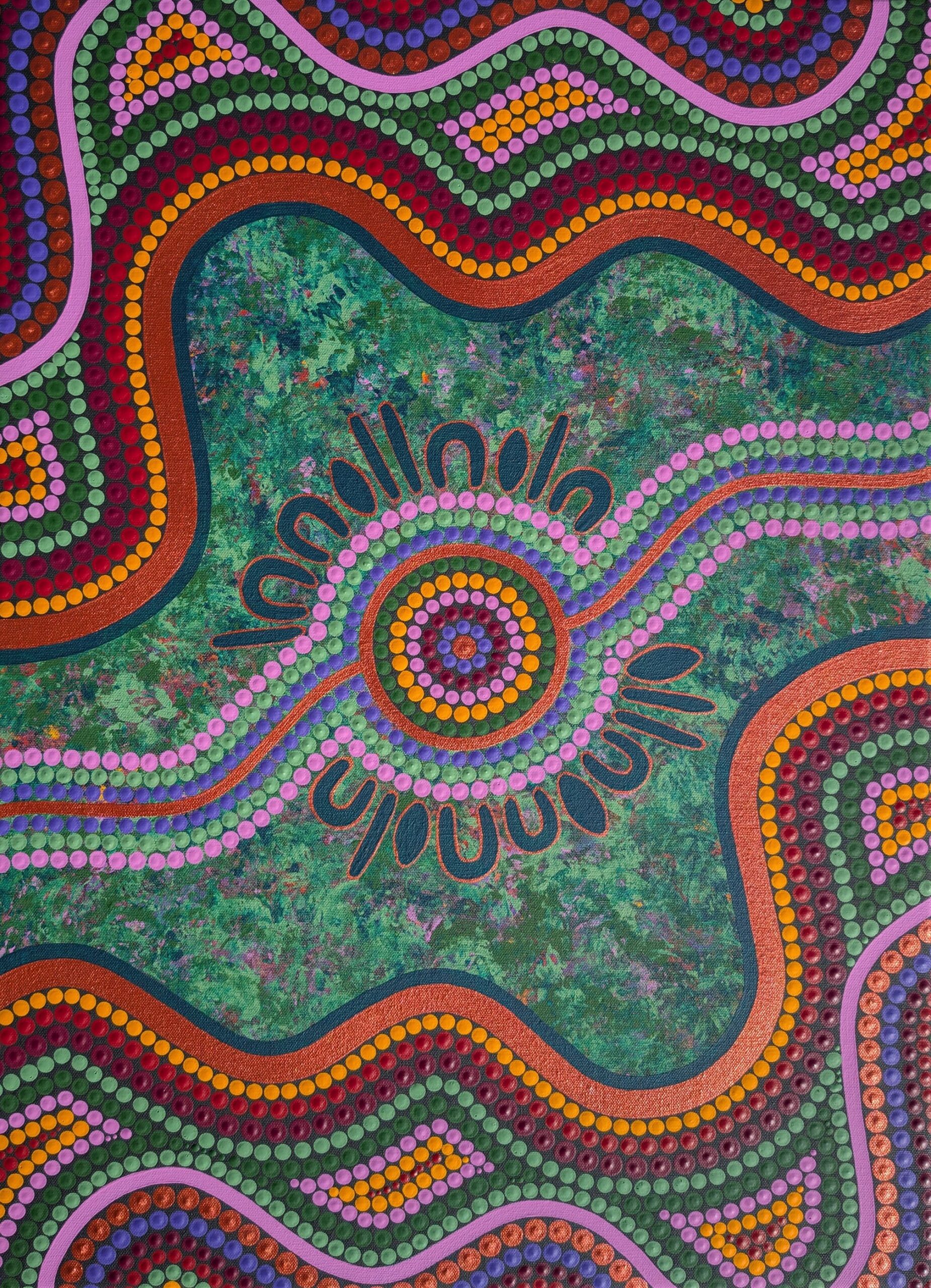 This artwork is inspired by the traditional healing knowledge of Aboriginal people, the original inhabitants and caretakers of Country for over 65,000 years.