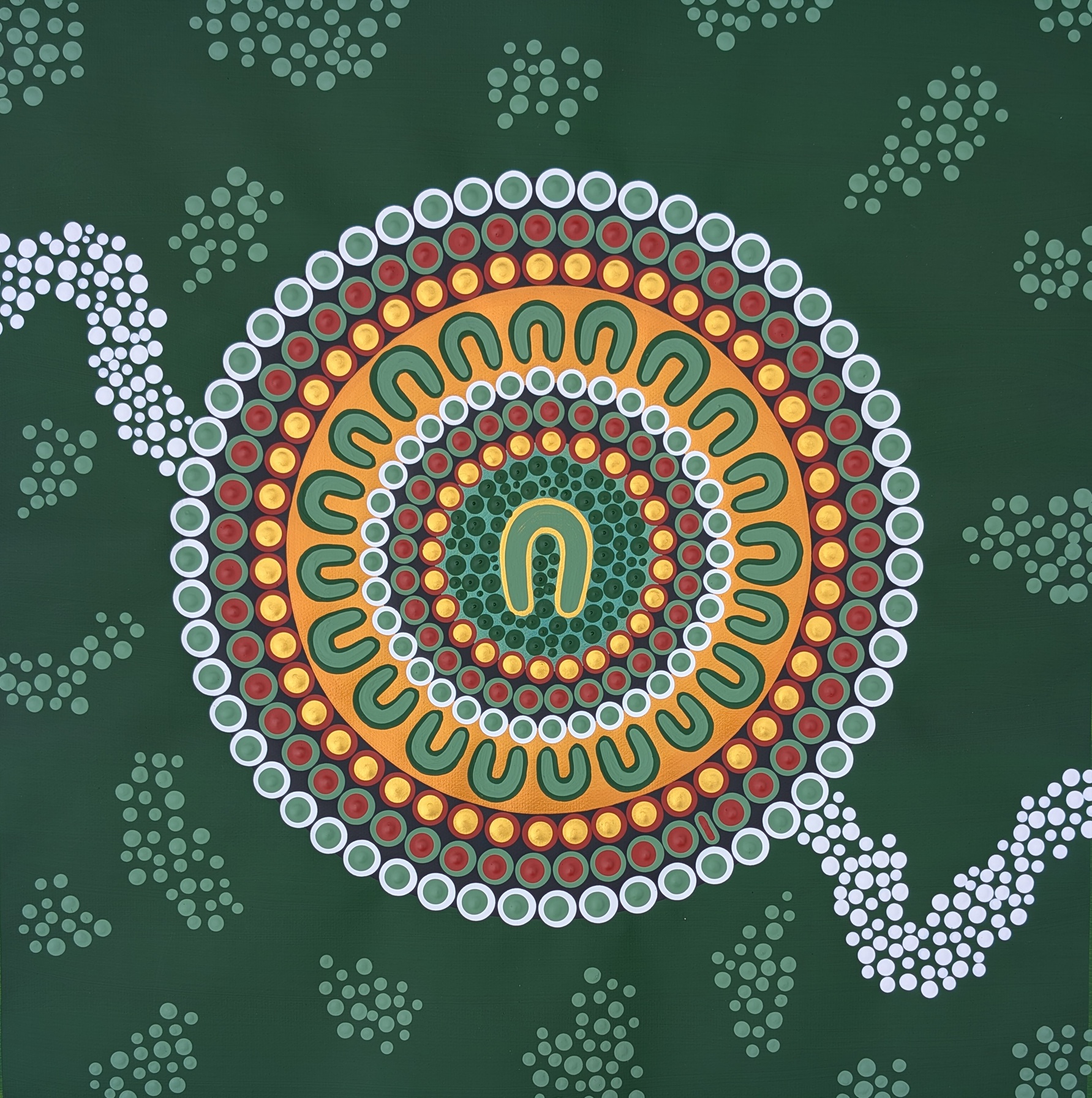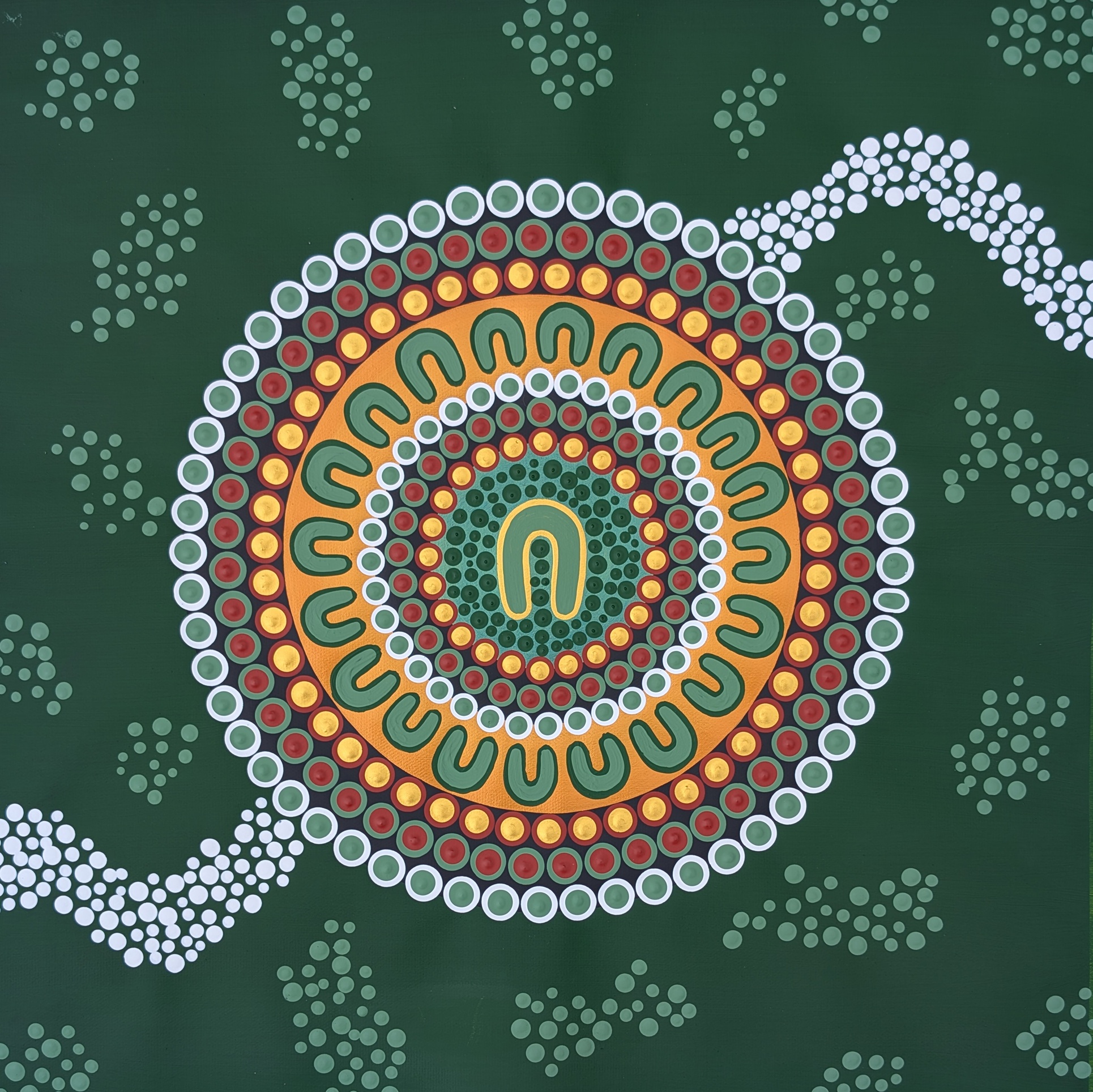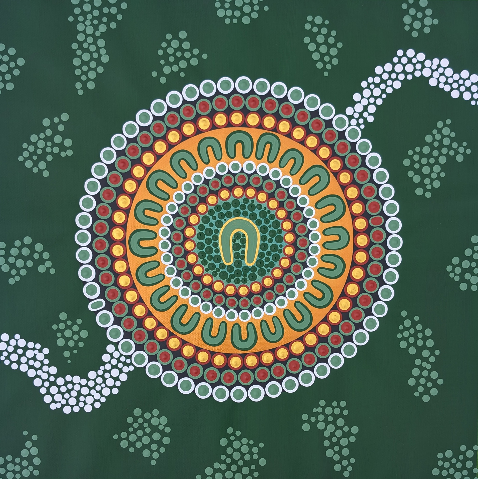 The surrounding symbols represent her family, connected through her love, values and guidance. Though each artwork is a recreated original, they carry their own unique spirit and energy and are intended to live in six different homes, reflecting how her legacy continues equally through each child and grandchild.