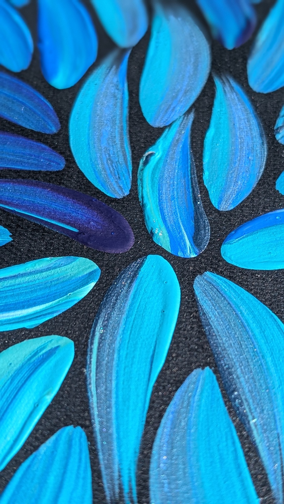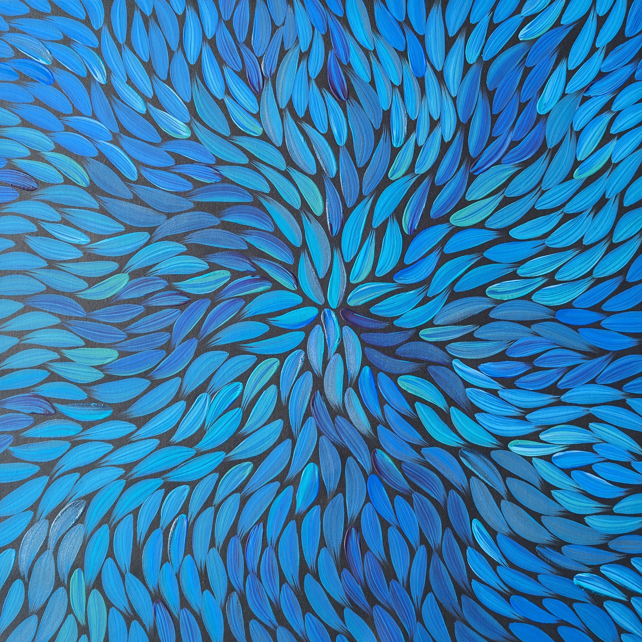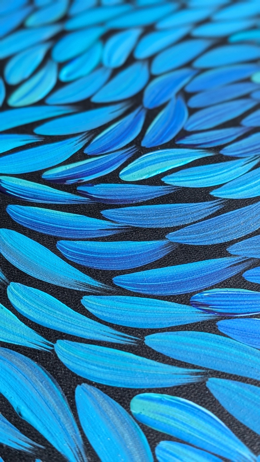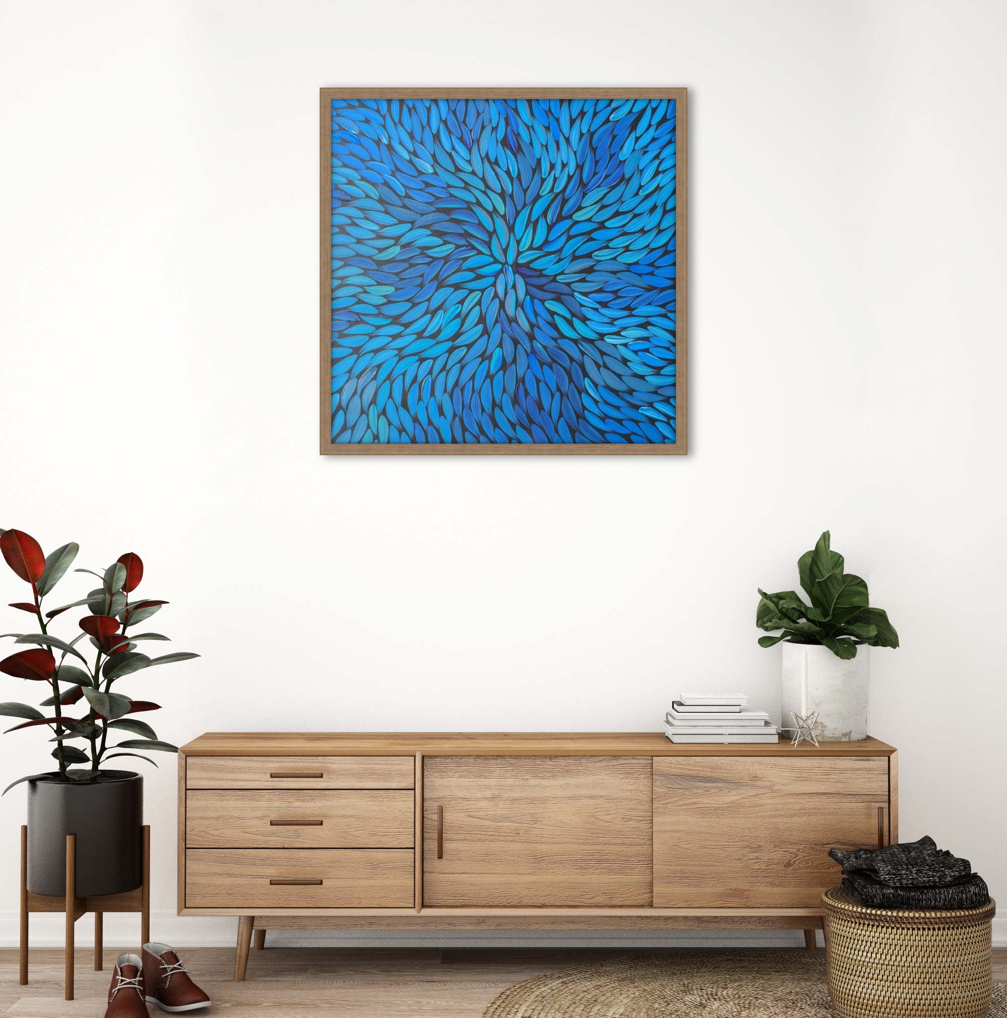 This artwork speaks to the healing energy of the ocean, where the waves wash away the old and bring renewal. The medicine leaves flow like underwater currents, moving together in harmony. Shades of blue represent calmness, clarity and emotional balance, reminding us of the deep connection between water, spirit and healing.